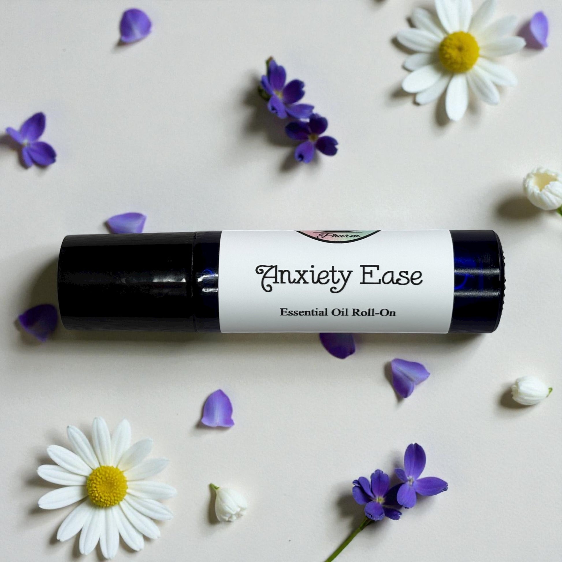 ANXIETY EASE ROLL-ON BLEND: Made with 100% Pure Essential Oils of Vetiver, Chamomile, Bergamot, Lavender, Frankincense, Blue Tansy, & Ylang Ylang.