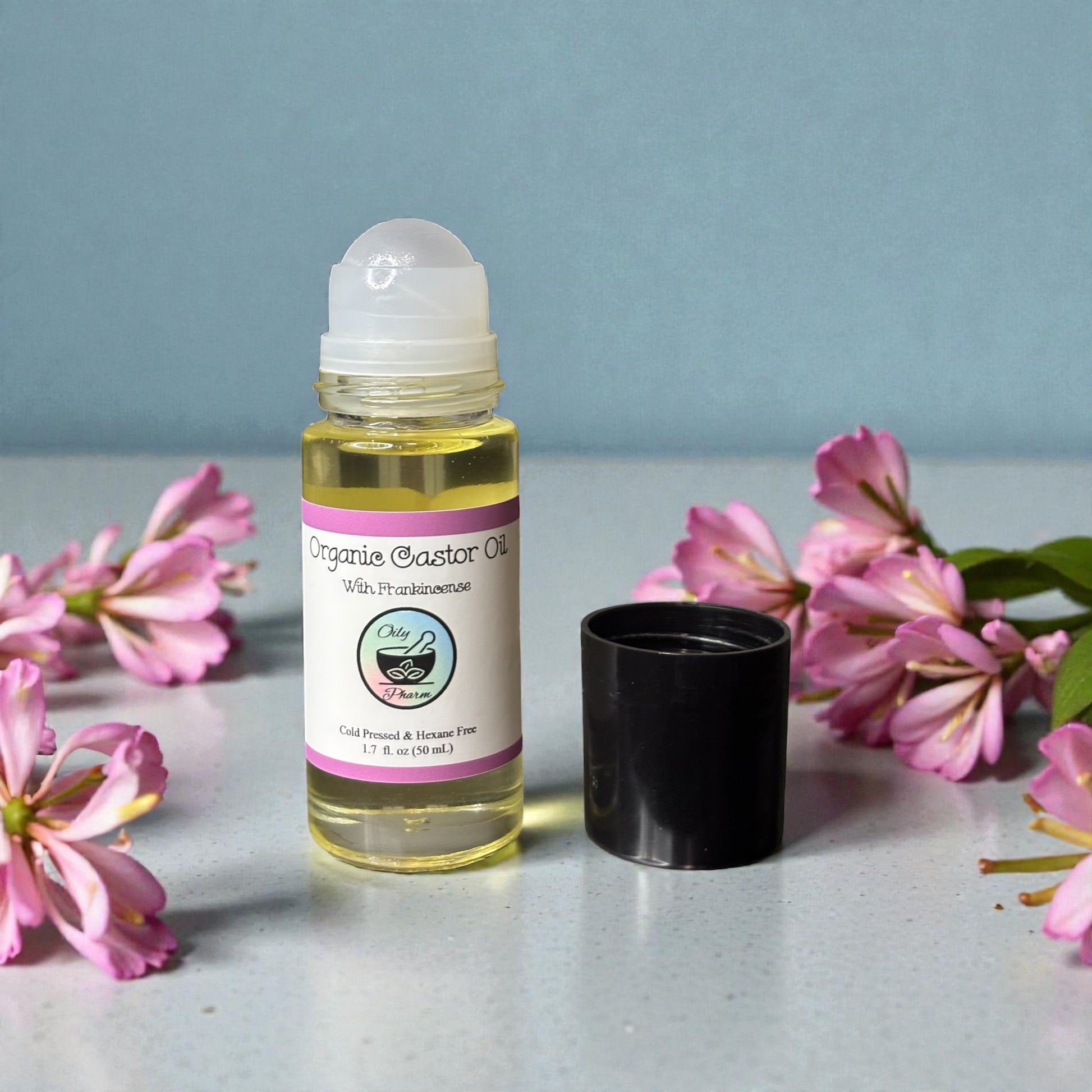 ORGANIC CASTOR OIL WITH FRANKINCENSE-Essential Oil Roll-On, Hexane-Free, Liver Detox, Anti-inflammatory, Natural Skincare, Pain Relief