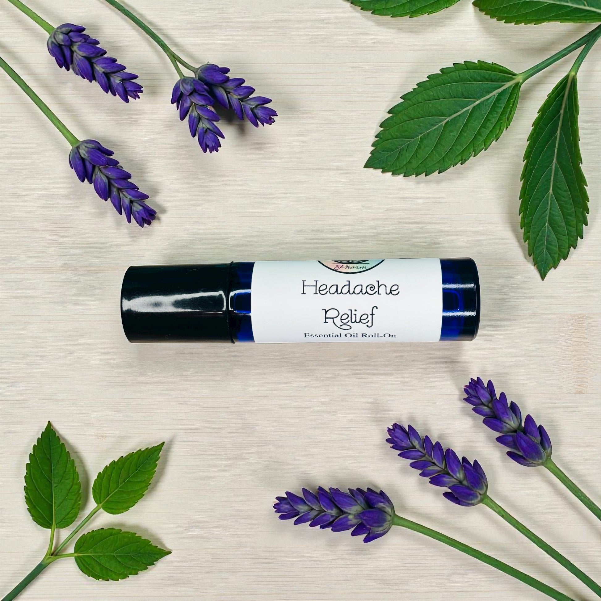 HEADACHE RELIEF ROLL-ON BLEND: Made with 100% Pure Essential Oils of Peppermint, Lavender, Marjoram, Copaiba, & Helichrysum.